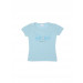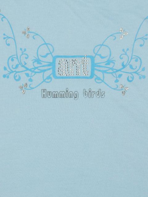 Blue t-shirt, has a round neck, floral prints with glitter and metallic stud detailing on the front and short sleeves
