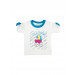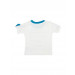 White T-shirt made of 100% cotton, has short sleeves with buttoned flaps at the hems, round neck and graphic print on the front