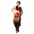 Red skirt that has a broad elasticated waistband, bow on the left side of the waistband and gathered with graphic print on the right