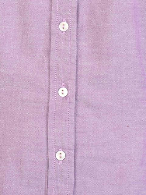 Purple V-neck shirt made of 100% cotton, has full sleeves with single button cuffs, a spread collar, buttoned placket and a curved hem