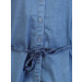 denim shirt dress made of 100% cotton, has long sleeves with buttoned cuffs and mid sleeve button tab, buttoned centre placket, denim covered buttons, shirt back is slightly gathered at yolk, belt tie at back with belt loops at sides, two front pockets and curved hem
