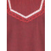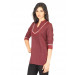 Maroon kurti, made of 100% cotton, has a round slit neck, three quarter length sleeves, side bust darts, alternate print panel and stitch detail around the neck and edges of the sleeves, and side vents