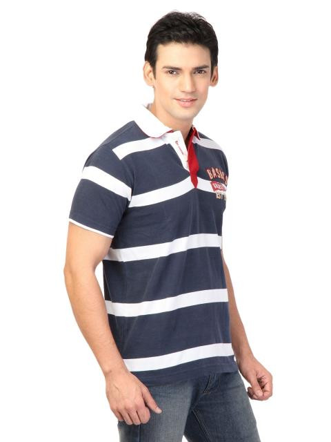 Flaunt your youthful attitude in style with this striped polo t-shirt from basics. The contrast inner collar and placket enhances your style statement, while the cotton fabric keeps you fresh and comfortable all day. Team this T-shirt with jeans and suede shoes for unparalleled cool.