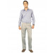 A pair of grey woven mid-rise trousers, has a zip fly and button closure, waistband with belt loops, a slant pocket on either side of the front, a coin pocket on the right, two welt pockets with button closures on the back, a brand patch above the right welt pocket
