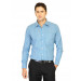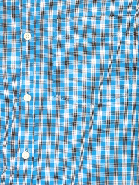 Blue, black and white plaid check shirt made of 100% cotton, that has long sleeves with buttoned cuffs, spread collar with tape detailing on the inseam, front buttoned placket, patch pockets on the left chest and curved hem