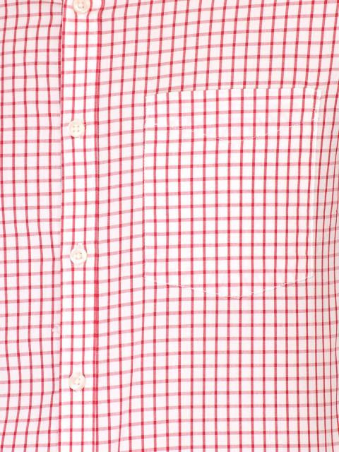 Red and white check shirt made of 100% cotton with a washed effect, that have long sleeves with buttoned cuffs, spread collar with tape detailing on the inseam, front buttoned placket, patch pocket on the left chest and curved hem