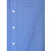 Blue shirt made of cotton, that has long sleeves with buttoned cuffs, spread collar with a buttoned front placket, patch pocket on left chest and a curved hem
