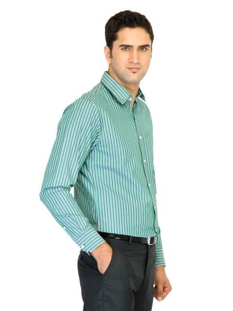 Belmonte Men Stripes Green Shirts