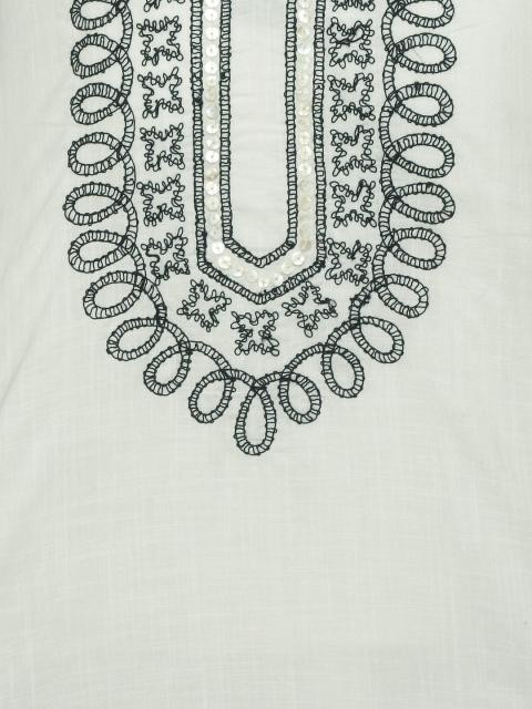 White kurta embroidered and sequinned detail, has a round neck, three quarter sleeves