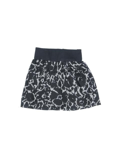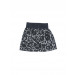 Black printed skirt 100% cotton, has a broad ribbed waist, and an inner skirt lining