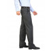Charcoal grey formal trousers made of 75% polyester and 25% viscose, has a flat front with two pockets on the sides, two welt pockets on the back with button closures, brand badge at the side of the right pocket, loops on the waist, reinforced stitch detailing along the crotch area, and a zipper and button closure