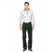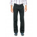 Black trousers made of 100% cotton, has a flat front, two pockets on the sides, two cargo pockets on the back with buttoned flaps, looped waist, brand tab on the right hip pocket, black stitch detailing, and a button and zipper closure