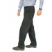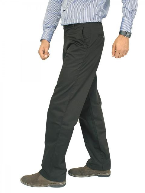 Dark olive trousers, has flat front with two insert pockets on the sides, two welt pockets on the back with buttoned closures, plastic zipper and button closure, loops on the waist to secure a belt and extended hems that can be trimmed to suit the wearer's height