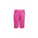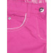 Pink shorts that have two side pockets, two back pockets with buttons on the sides that have crystal embellishments, stitch detailing, zipped and buttoned closure with a crystal embellishment on the button and belt loops on the waist