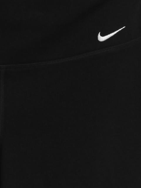 Black single jersey knit capris, double layered yoke at front and back, embroidered Nike swoosh on yoke at front, Flat lock stitch, black piping at side seams