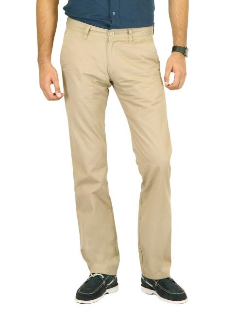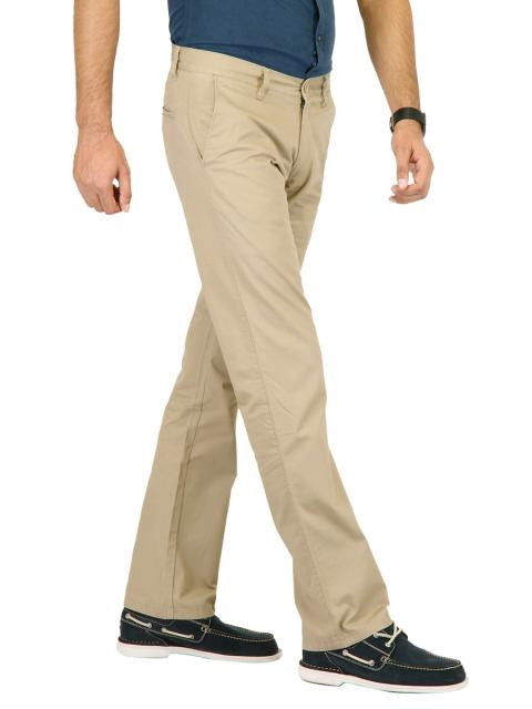 Light fawn coloured trousers made of 100% cotton, has two front and two rear button-fastening pockets, and a zipper and button fly