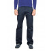 Navy blue trousers made of 100% cotton, has a flat front, two pockets at the waist, two pockets at the back with button closures, looped waist, and a button and zipper closure on the front