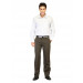 Structured brown trousers made of 65% polyester and 35% cotton 2 ply fabric, that has two insert pockets on the sides, two welt pockets on the back with buttoned closures, brand name appliqued on the back right pocket, comfortable waistband with loops, button and zipper closure on the front and extended hemline that can be reduced to suit the wearers height