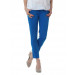 Blue garment dyed jeans, two curved pockets in front with insert coin pocket on the right,