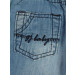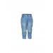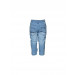 Light blue denim jeans made of 100% cotton, with dark blue stitch detailing, two insert pockets on the front, two patch pockets on the back and with an elasticated waist