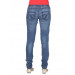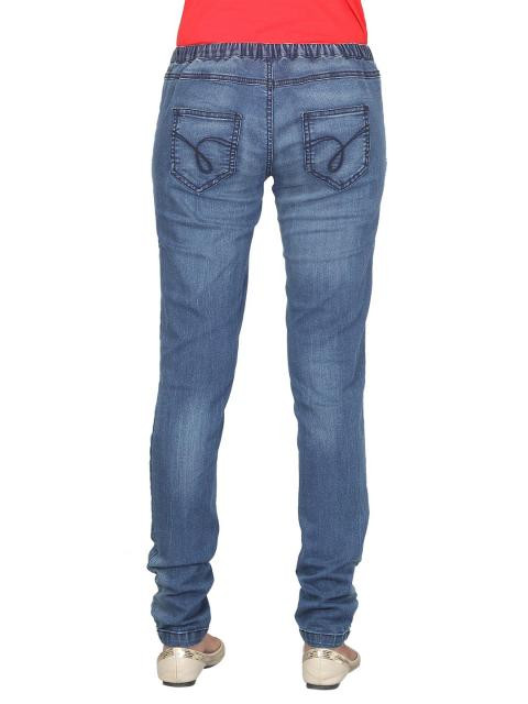 Rinse washed blue bottoms made of 73% cotton, 24% polyester and 3% spandex, with an elasticated waist, stitch detailing and two pockets on the back