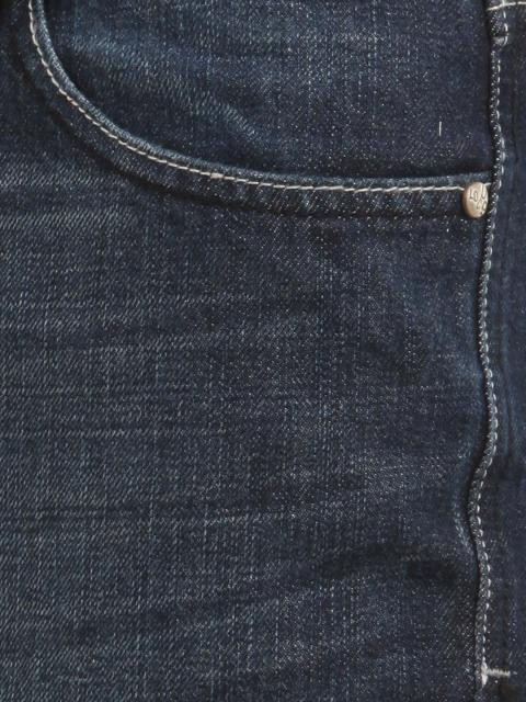 Blue washed jeans, has a zippered and a buttoned closure, belt loops on the waistband, brand patch at the back on the waistband, two insert pockets in front with a coin pocket inside the right pocket and two patch pockets at the back with stitched detailing