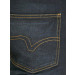 Navy blue jeans made of 100% cotton, has pockets on the sides with a patch pocket inside the right one, two pockets at the back, a looped waist with brand embroidery on the inseam of the back waist, button and zipper closure on the front, and contrast colour stitch detailing