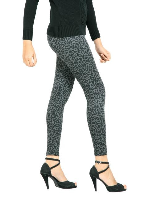 Black leopard print jeggings made of 97% polyester and 3% lycra, with a elasticated waist
