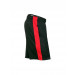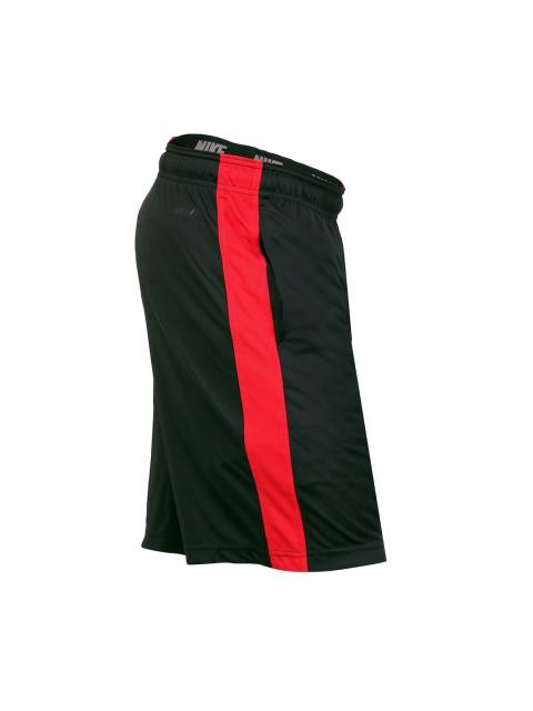 Black shorts made of 100% polyester, is engineered with Dri-Fit technology, has an elasticated waist with drawcords, red strip detailing along the length, pockets on the sides and nike swoosh printed on the left leg