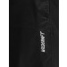 Black full length rain trousers, two side pockets with Velcro closures, adjustable elasticated hemline, branding on left leg, wide elasticated waistband