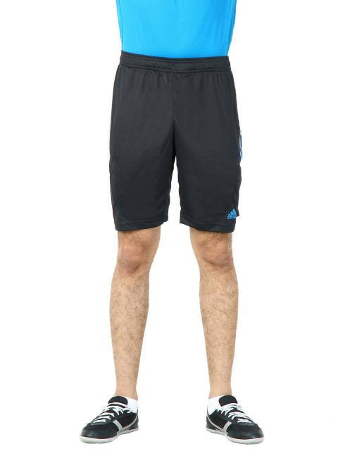 One look at these black football shorts from adidas will tell you how perfect they are for your matches. The blue stripes running down both sides add that touch of vibrancy to them, while the mesh panels improve ventilation. The waist band is soft; for a more snug Fit you can use the internal drawstring too. Team it with a smart tee and a pair of football studs and get ready to rule the field!