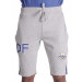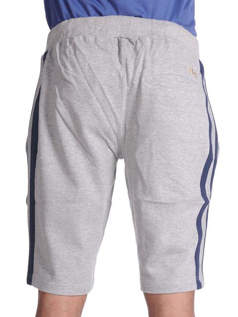 Grey melange shorts made of fleece fabric witha brushed finish, broad elastic waist with a drawcord, deep side pockets, one pocket on the right back with fifa embroidery in gold, two navy blue fabric strips on the sides, fifa emblem on left knee and Defender lettering on right thigh
