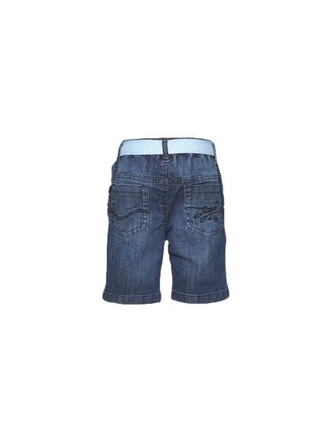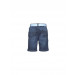 Blue denim bermudas in stretchable cotton fabric, with black thread stitching, two insert pockets on the front, two patch pockets on the back, with elasticated waist and with a light blue woven belt with metal loops