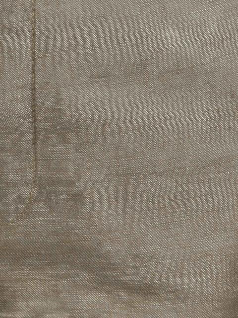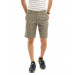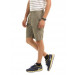 Brown shorts that have two insert pockets on the sides, broad and comfortable waistband with loops, two double welt pockets at the back with buttoned closures, brand badge above the right welt pocket at the back with a zipped and buttoned closure on the front