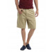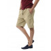 Khaki coloured shorts, has a belt loops around the waist, buttoned closure at the waist with a buttoned fly, two insert pockets in front and two welt pockets at the back