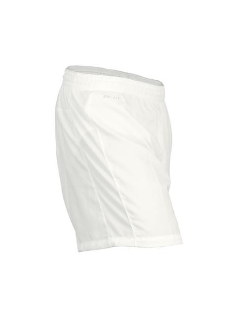 White running shorts made of 100% polyester Dri-Fit fabric, has an attached underwear on the inside, elasticated waistband with a drawstring, mesh on the sides and swoosh logo in a reflective material towards the left hemline