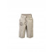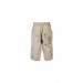 Beige cargo pants made of 100% cotton, has a looped waistband with an elasticated back, a hook and zipper closure, two insert pockets on the sides, two cargo pockets on the back with buttoned flaps, two cargo pockets on the knees with buttoned flaps, distressed look brand name on the right leg and distressed look graphic on the right pocket at the back