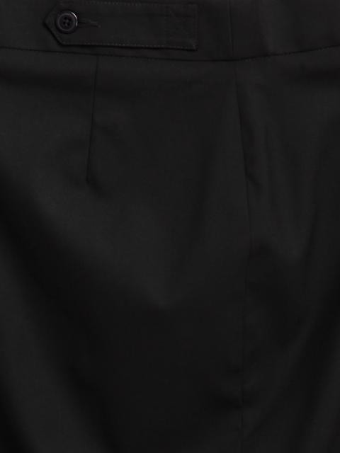 Black pencil skirt,vent at front,concealed zipper with snap at centre front, tab with buttons at waistband