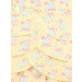 Yellow woven skirt with overlapping layers of floral printed frills, waistband with loops and concealed zipper on the left, metal brand badge near front hem, attached lining
