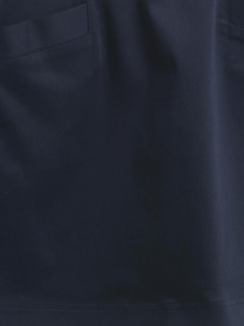 Navy blue formal skirt with side pockets and a zipper and button closure at the back