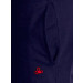 Deep blue track pants made of 100% cotton, handy side pockets, comfortable elastic waistband with inner drawstring, and brand name and logo embroidered on the left leg