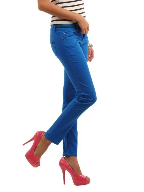 Directoire blue trousers, button and zipper closure in front, belt loops around the waist, two insert pockets in front with a coin pocket on left, patch pockets at the back with stitched detail and brand patch on the right back pocket