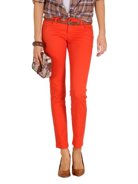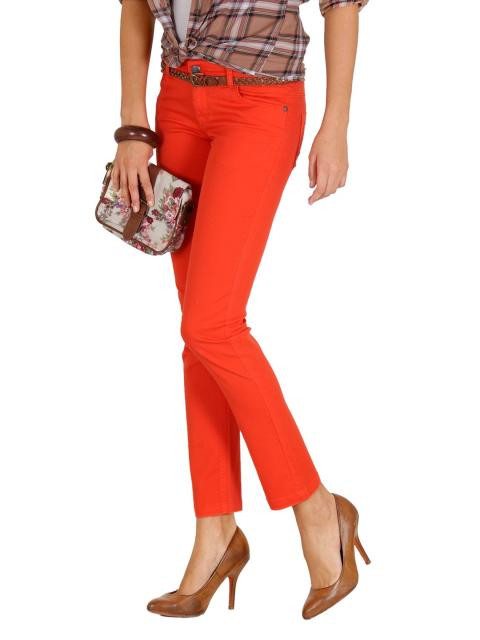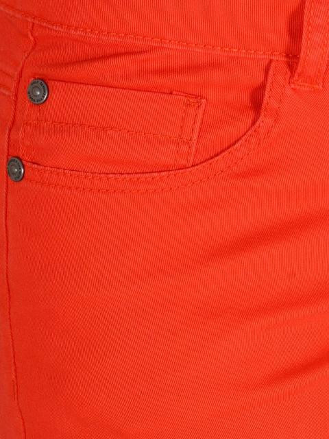 Orange trouser, has a buttoned and zipped closure, belt loops around the waist, two insert pockets in front, has a patch pocket inside the right insert pocket and two patch pockets at the back with stitched detail and brand patch on the right pocket