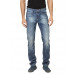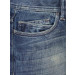 Blue mid stone washed jeans made of 100% cotton, has pockets on the sides, two pockets on the back with thread detailing, comfortable waist with loops and a cross loop at the mid back, brand badge on the waist, and has a zippered and button closure