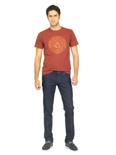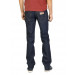 Blue jeans has a buttoned and zipped closure, low slung belt loops around the waist, two insert pockets in front with a change pocket in the right pocket, two patch pockets at the back with stitch detailing and brand badge on the right patch pocket