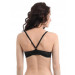 Black padded and underwired brassiere, has front click clasp opening, adjustable shoulder straps with bow detail, cross back and lacy back strap