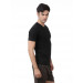 Black single jersey knit T-shirt, crew neck with rib knit binding, short sleeves, printed inner branding, brand badge on left sleeve