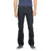 Navy blue jeans with a clean washed look, made of 66% cotton and 34% polyester, has two insert pockets, two patch pockets on the back with embroidery detailing, double patch pocket detail on the right front pocket, comfortable waist with belt loops, brand patch on the waistband at the back, and metal button and zipper closure on the front