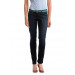 Dark blue washed jeans, has a buttoned and zipped closure, belt loops around the waist, brand patch at the back on the waist, two insert pockets in front, one patch pocket inside the right insert pocket and two patch pockets at the back with embroidered logo on the right patch pocket