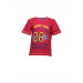 Round neck red t-shirt in 100% cotton with chest print and stitch detailing along the shoulders and hemline